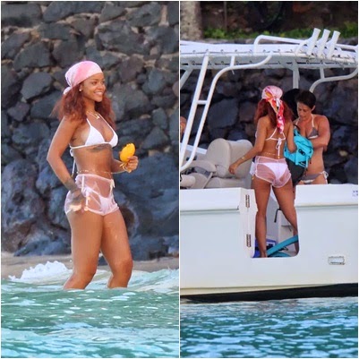 Rihanna sabe como poucos aproveitar a vida. Neste último final de semana não foi diferente. Usando um biquíni comportado e um short transparente, a cantora curtiu uma praia no Havaí. Acompanhada de amigos, Rihanna aproveitou o dia de folga em passeio de barco com amigos. Recentemente, para ser uma das damas de honra do casamento de sua assistente Jennifer Rosales com Aaron Davis, que aconteceu em uma praia no Havaí, Riri apostou em vestido lilás com bordados, laço na cintura, decote generoso e costas nuas. O modelito é da grife Badgley Mischka e foi feito especialmente para a cantora.