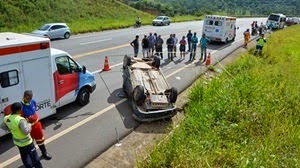 Uma mulher morreu e uma criança de 5 anos ficou ferida após um capotamento na BA-093, em Mata de São João. O acidente aconteceu por volta das 13h40, no km 32 da rodovia, próximo ao bairro do Caboré. Há suspeita que Alessandra Moreira tenha perdido o controle do veiculo e capotado. Segundo familiares, a vítima retornava para casa quando aconteceu o acidente. Alessandra morava na localidade do Camboatá, que fica na própria BA-093, a 2 km do local do acidente. A criança envolvida no acidente foi retirada do veículo por funcionário da concessionária Bahia Norte que trafegava na via. Ela recebeu os primeiros socorros no local por uma ambulância da concessionária, que em seguida a transferiu para o Hospital Municipal Dr. Eurico Goulart de Freitas. Segundo um socorrista da Bahia Norte, o menino sofreu fratura em um dos dedos da mão e escoriações leves nos braços e pernas. Ele não corre risco de morrer. A vítima era proprietária do mercadinho Popular, localizado no bairro do Caboré. Familiares foram ao local do acidente e ficaram chocados com a tragédia. Alessandra foi a ganhadora do Avião do Faustão em julho de 2011, em Mata de São João. As informações são do site Tribuna da Chapada.