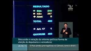 A Câmara dos Deputados rejeitou nesta semana a adoção do sistema eleitoral conhecido como “distritão” para a escolha de deputados federais, deputados estaduais e vereadores. Votaram contra a proposta 267 deputados, e 210 votara a favor. Principal bandeira do PMDB, esse modelo estabeleceria o voto majoritário, já que seriam eleitos os candidatos mais votados em cada estado ou município, sem levar em conta os votos para o partido ou a coligação. O distritão é defendido pelo presidente da Câmara, Eduardo Cunha (PMDB-RJ), e pelo vice-presidente da República, Michel Temer, também do PMDB. Para aprovar o novo sistema, seriam necessários 307 votos favoráveis. O plenário ainda terá que analisar outra proposta de alteração do sistema de votação, o "distritão misto", em que metade dos candidatos seriam escolhidos por eleição majoritária e a outra metade conforme o quociente eleitoral e a posição na lista estabelecida pelos partidos. Se essa proposta também for derrubada, será mantido o sistema eleitoral atual, que é o proporcional com lista aberta. Hoje é possível votar tanto no candidato quanto na legenda, e um quociente eleitoral é formado, definindo quais partidos ou coligações têm direito de ocupar as vagas em disputa. Com base nessa conta, o mais bem colocado de cada partido entra. Antes de derrubar o distritão, a Câmara já havia rejeitado outros dois modelos alternativos de votação- a lista fechada e o distrital misto- por isso fica mantido o modelo atual. CONTINUAR LENDO...
