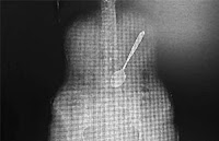 Uma mulher engoliu, sem querer, uma colher de 15 centímetros de comprimento ao comer macarrão instantâneo. Ela precisou ser levada para um hospital em Yangzhou, província de Jiangsu, na China, para extrair o objeto. Os médicos tentaram retirar a colher usando um instrumento médico longo para ‘pescá-lo’ a partir de seu estômago. Em casos semelhantes, o procedimento foi feito em apenas alguns minutos, mas, desta vez, os médicos tiveram dificuldade, devido ao posicionamento do utensílio. Felizmente, após duas horas, eles conseguiram retirar com cuidado a colher de seu estômago, sem qualquer dano interno. A mulher disse que a colher escorregou por sua garganta enquanto ela tentava, aparentemente, sugar uma porção de macarrão, que havia preparado para seu almoço. A equipe do hospital pareceu não acreditar na história da ingestão acidental da colher, acreditando que ela seria muito grande para ter passado por sua garganta. Quando questionada, Wang se recusou a entrar em detalhes sobre como exatamente a colher foi parar lá. (IBahia)