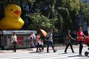 Um pato amarelo foi colocado em cima de uma banca de jornal localizada na calçada do parque do Trianon, na Avenida Paulista, centro de São Paulo, ontem segunda-feira. O objeto faz parte da campanha “Não Vou Pagar o Pato”, que se trata de uma luta pelo combate ao aumento de impostos. A iniciativa é da Frente Nacional contra o Aumento de Impostos, liderada por Paulo Skaf, presidente da Fiesp (Federação das Indústrias do Estado de São Paulo) e do Ciesp (Centro das Indústrias do Estado de São Paulo). O funcionário da banca de jornal disse que não sabia quem colocou o pato na banca, apenas o motivo pelo qual ele estava no lugar. A campanha teve um lançamento oficial, que reuniu mais de 100 representantes da indústria, do comércio, dos serviços e da agricultura na calçada do prédio da Fiesp. Na ocasião, Paulo Skaf explicou que o movimento foi criado para conscientizar a sociedade sobre a carga de impostos e evitar novo aumento da carga tributária. “Estamos mostrando: o imposto já está nos preços da geladeira, do smartphone, do material escolar. Material escolar tem 40% em média de impostos; naquela geladeira de R$ 1.000, ele colocou R$ 400 de impostos”, exemplificou. “Não estamos aqui debatendo imposto da indústria, do comércio, de serviços ou de tecnologia.