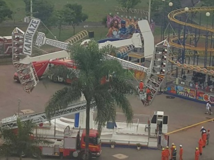 Uma falha em um brinquedo conhecido como “kamikaze” deixou dez crianças presas na tarde do último sábado (31) em um parque de diversões no centro de Brasília. O Corpo de Bombeiros precisou usar uma escada para resgatar as vítimas. A Defesa Civil foi acionada e interditou o equipamento. De acordo com os bombeiros, o brinquedo parou inicialmente de ponta-cabeça, a uma altura de cerca de 28 metros. Os socorristas conseguiram movê-lo e deixa-lo a aproximadamente dez metros do chão. O brinquedo faz giros de até 360 graus. Ninguém ficou ferido, e foi necessária uma hora para realizar o resgate. O 'kamikaze' funcionava havia quatro meses no local.
