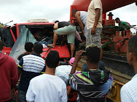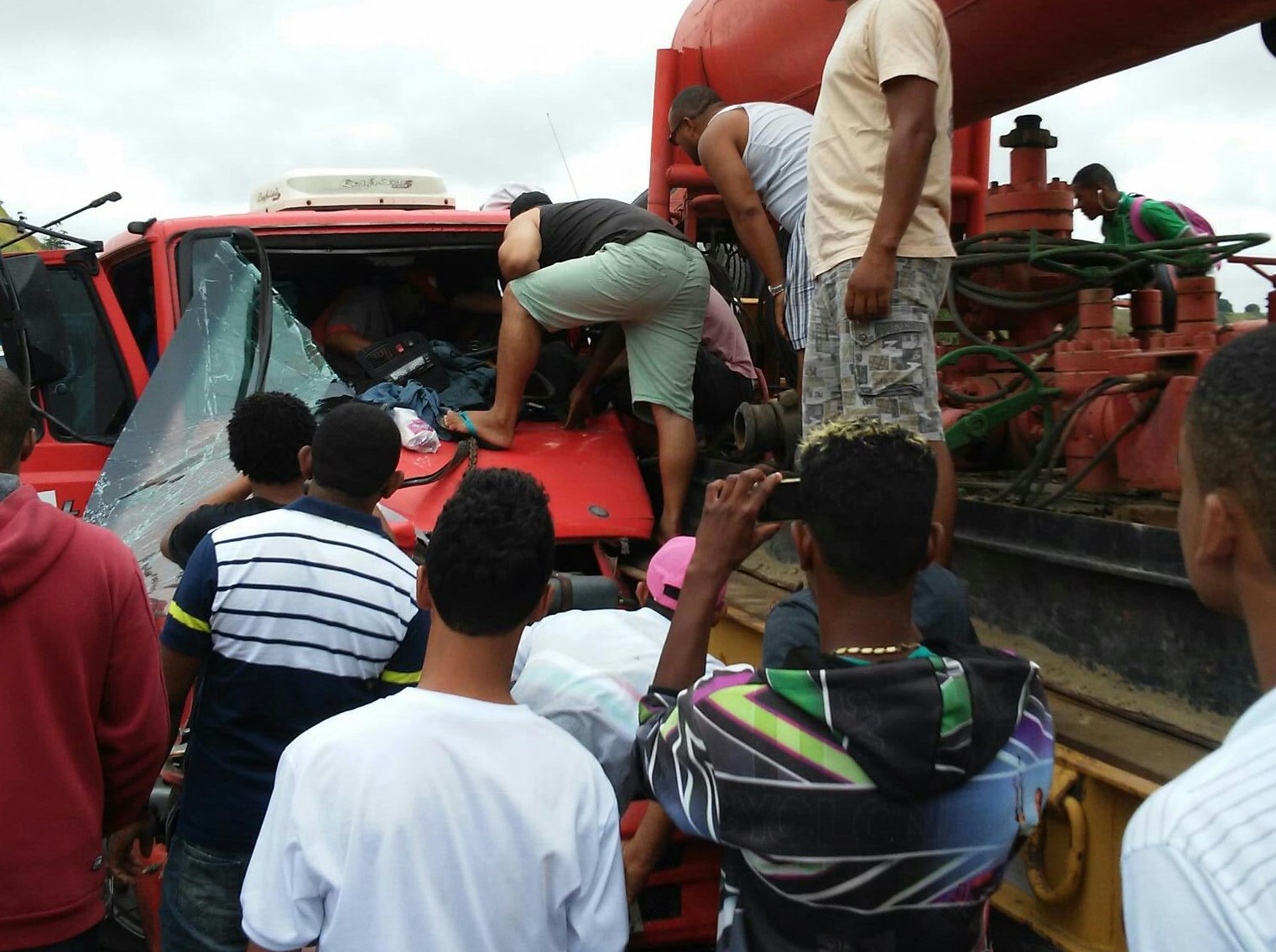 Uma grave colisão entre duas carretas aconteceu por volta das 8h30 desta sexta-feira (13) na BR-101, nas proximidades da cidade de Dom Macedo Costa. De acordo com informações colhidas pela Reportagem Voz da Bahia, o veículo de grande porte , placa policial PBC-7090, licenciada em Linhares, Espírito Santo estava passando pela Ponte do Mucambo quando no sentido contrário vinha um caminhão tanque tipo Bi-trem placa OKP-6675, licenciado em Madre de Deus que estava carregado de gasolina, o qual teve de desviar um pouco da sua trajetória pelo fato de o outro veículo ter ficado sem freios e ambos colidiram. Com impacto um dos condutores ficou preso as ferragens com ferimentos, mas estava consciente aguardando o atendimento. O Corpo de Bombeiros foi acionado e até o fechamento desta matéria estava tentado tirar o condutor gravemente ferido das ferragens. O Serviço de Atendimento Móvel de Urgência (SAMU) também foi acionado e até o fechamento desta matéria se encontrava no local prestando os primeiros socorros às vítimas. A pista nos dois sentidos, tanto para Salvador quanto para Santo Antônio de Jesus foi interditada pela Polícia Rodoviária Federal, gerando um grande congestionamento no local.