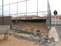 Parte da arquibancada de uma quadra de esportes no Residencial Juazeiro I, na cidade de Juazeiro, região norte da Bahia, desabou e caiu próximo a um parque infantil, na manhã de domingo (27). Apesar do susto, já que havia crianças perto do local, ninguém ficou ferido. O acidente ocorreu no bairro Itaberaba, no condomínio inaugurado no mês de agosto e construído por meio do programa Minha Casa Minha Vida, do Governo Federal, em parceria com a Prefeitura de Juazeiro. Segundo a moradora Maria Soares Silva, o local estava cheio de crianças no momento do desabamento. "A gente está em casa fazendo as coisas e eles ficam brincando aqui. É um perigo isso aqui. A gente agora nem pode deixar as crianças brincar mais", reclamou. Ainda conforme os moradores, desde a inauguração, há rachaduras nos imóveis. O condomínio tem 1.480 apartamentos. A Caixa Econômica Federal, responsável pelo empreendimento, foi procurada pela reportagem, mas até o início da tarde desta segunda-feira (28), não enviou resposta. (G1)