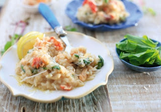 Em uma panela, em fogo baixo,aqueça 1 colher (sopa) de manteiga com 2 colheres (sopa) de água. Doure a cebola por cinco minutos. Despeje o espumante e cozinhe, mexendo até reduzir e engrossar. Tempere com sal. Junte o arroz e mexa vigorosamente por dois minutos. Coloque a cavaquinha e mexa por dois minutos. Ajuste o sal e cozinhe, mexendo de vez em quando, até quase secar. Adicione o caldo de legumes aos poucos, conforme for secando, mexendo sempre para não grudar no fundo. O risoto deve ficar cremoso, com os grãos cozidos, mas al dente. Quando estiver no ponto ideal, junte a manteiga restante e o queijo parmesão. Misture. Desligue o fogo. Finalize com a rúcula. Misture delicadamente e sirva.
