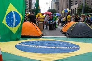 Um grupo de manifestantes pretende acampar na Avenida Paulista, região central da São Paulo, em defesa do impeachment da presidenta Dilma Rousseff. No início da manhã de hoje (17) o grupo somava cerca de 50 pessoas. Entretanto, ao longo do dia, o protesto foi crescendo. Na parte da tarde, centenas de pessoas ocupavam os dois sentidos da rua. Entre os que dizem que participarão da vigília está a instrumentadora cirúrgica Andrea Basílio (51 anos). /"(Só vou embora) a hora que ela (Dilma) sair”, disse. Andrea acredita ser importante participar do protesto, ainda que possa ser prejudicada no trabalho. “Vale a pena”, enfatizou. Os protestos contra o governo estão concentrados desde a noite de ontem (16) em frente a Federação das Indústrias do Estado de São Paulo. A entidade apoia os atos contra o governo e, na noite de ontem, exibia uma faixa luminosa pedindo a renúncia da presidenta. Muitos manifestantes carregam bandeiras do Brasil e alguns vestem camisas da seleção brasileira. Além de gritarem palavras de ordem, os participantes do ato fazem barulho com apitos e cornetas. Na manhã de hoje, alguns manifestantes eram remanescentes do protesto de ontem, como o estudante de engenharia e microempresário Anderson Rocha. Para ele, Lula se tornou ministro para dificultar as investigações da Operação Lava Jato. O jovem de 26 anos disse ter ido à avenida tão logo soube que o ex-presidente assumiu o cargo. A Polícia Militar tentou negociar por diversas vezes com o grupo para que ao menos as faixas exclusivas de ônibus fossem liberadas. Os manifestantes se negaram e chegaram a hostilizar o secretário de estado da Segurança Pública, Alexandre de Moraes, que esteve no local para tentar negociar uma saída para o impasse. Porém, ao contrário do procedimento adotado pela polícia em outras manifestações, não foi tomada nenhuma ação para desobstruir a via. Com o bloqueio, o trânsito está interrompido nos dois quarteirões adjacentes ao local do protesto.