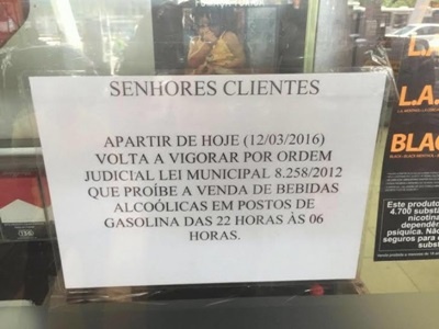 Lei que proíbe venda de bebidas em postos volta a vigorar