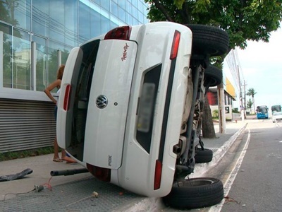 Um casal de namorados começou a brigar dentro do carro, que capotou várias vezes, na Avenida Saturnino de Brito, na Praia do Canto. O acidente aconteceu por volta das 14 horas, deste sábado (26). Testemunhas disseram que o homem, que estava no carona, puxou o freio de mão, no meio da discussão. Apesar do capotamento, ninguém ficou ferido. O vendedor de picolé Paulo Renato Ribeiro viu o acidente. Ele disse que o carro rodou na pista, capotou e parou em cima da calçada depois de bater no poste de luz. "Eu vi uma cena de horror", disse. A testemunha contou que a motorista estava em alta velocidade e, mesmo depois do acidente, o casal continuou discutindo. A mulher culpava o namorado pelo acidente. "A motorista mandou ele sair fora, que ela não queria sair mais, que eram cinco anos de briga. Ela me contou que eles estavam discutindo dentro do carro, ai ele puxou o freio de mão e o carro capotou", contou Paulo. O namorado saiu do local do acidente e a polícia de trânsito aconselhou a namorada a ir até a delegacia da mulher prestar uma queixa contra ele. Os envolvidos no acidente não quiseram falar com a reportagem. (G1)