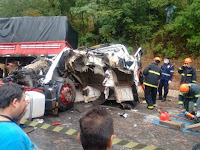 O motorista de uma carreta saiu com ferimentos leves após uma colisão que destruiu completamente a cabine do veículo que ele dirigia. O acidente ocorreu por volta das 10h deste domingo (10), na BR-242, próximo à cidade de Barreira, no oeste da Bahia, e envolveu três carretas. Segundo informações da Polícia Rodoviária Federal (PRF), a colisão ocorreu na altura do Km-780. Ainda de acordo com a PRF, estava chovendo no momento, e uma das carretas derrapou e atingiu outra que vinha no sentido oposto. Uma terceira carreta acabou envolvida na ocorrência. O motorista ferido ficou preso nas ferragens, mas foi retirado por equipes do Corpo de Bombeiros consciente e com leves escoriações. Não há informações se a vítima estava no veículo que derrapou. A PRF não divulgou para qual hospital o motorista foi levado. Até às 16h, as carretas permaneciam no local e causavam um grande congestionamento. (G1)