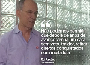 O presidente nacional do PT, Rui Falcão, disse que o partido decidiu, em reunião realizada ontem terça-feira (19), não reconhecer um eventual governo de Michel Temer. O partido pretende ainda intensificar as manifestações nas ruas para pressionar o Senado a não aprovar o processo de impeachment da presidente Dilma Rousseff, aprovado no domingo pela Câmara dos Deputados. "O PT não vai permitir que ele ponha em prática seu programa. Não podemos permitir que depois de anos de avanço venha um cara sem voto, traidor, retirar direitos conquistados com muita luta. Não vamos permitir", afirmou Falcão. "É muito mais do que oposição parlamentar só. É dizer para a população, para a sociedade, que com governo ilegítimo não tem paz, não tem estabilidade, tem luta", completou o presidente do PT após o encontro, na executiva nacional do partido em São Paulo. nto diz no final que "se a oposição de direita insistir na rota golpista, não haverá trégua nem respeito frente a um governo ilegítimo e ilegal". Segundo Rui Falcão, a fala de Lula na reunião foi "emocionante". "Muitos companheiros chegaram a chorar", comentou. "Lula acha que foi importante a retomada das ruas e disse que vamos ter que continuar." "Lula disse que, se por acaso o golpe se consumar, nós vamos ter um período de transição pela frente para nos preparar. Mas ele manifestou convicção muito grande de que esse movimento [de manifestações contra o impeachment] pode ser vitorioso no Senado", afirmou Rui Falcão. O presidente da sigla disse ainda que o PT segue "a defender a reforma política" e que as manifestações "podem crescer em intensidade e convencer senadores a não terem mesmo comportamento [da Câmara]". "Esse governo antidemocrático não será reconhecido por nós. Não terá o nosso apoio. Não haverá trégua e nem estabilidade para um governo não reconhecido por nós", disse Falcão sobre a possível chegada do vice Michel Temer à Presidência do país. (Globo)