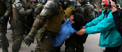Confrontos violentos foram registrados nessa quinta-feira (27) entre as forças policiais e estudantes, no Chile, para reivindicar educação gratuita para todos, uma promessa da presidenta Michelle Bachelet. No centro da capital chilena, alguns manifestantes mascarados atiraram pedras e paus contra a polícia, que reagiu com canhões de água e gás lacrimogêneo. Segundo dados da polícia repassados à agência France Presse, 117 pessoas foram detidas e 32 polícias ficaram feridos. No sábado (21), uma manifestação similar deixou uma pessoa morta em Valparaíso, quando Bachelet fazia o seu discurso anual perante o Congresso. A presidente chilena prometeu ampla reforma para acabar com um sistema educativo em grande parte privado e com benefícios para as elites, uma herança da ditadura de Augusto Pinochet (1973-1990). Depois do lançamento do projeto em 2014, as manifestações de estudantes e professores multiplicaram-se para reclamar a implementação mais rápida e menos seletiva da reforma. Com informações da Agência Brasil.