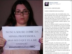 Entenda o caso: Para reprovar a professora, os peritos se basearam no Índice de Massa Corporal (IMC), que é uma medida internacional usada para calcular se uma pessoa está no peso ideal. A relação é feita entre peso e altura do indivíduo. Mariana foi classificada como obesa nível 3, com o índice de 43. O valor esperado de IMC é entre 18,5 e 25. O problema é que esse critério adotado não consta especificado no edital. Na publicação oficial apenas é citado que os aprovados no concurso precisam gozar de boa saúde para assumir a vaga. Na época, o departamento de perícias médicas do Estado de São Paulo disse que considera o índice de massa corpórea acima de 40 como obesidade mórbida, portanto uma doença grave. Diante disso, para o Estado, a professora de Bariri estaria em desacordo com o edital que determina que o candidato deve gozar de boa saúde.