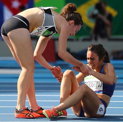 A fundista da Nova Zelândia Nikki Hamblin foi agraciada com a medalha de Fair Play esportivo do COI (Comitê Olímpico Internacional) por sua atitude ao ajudar Abbey D'Agostino, dos EUA, depois de uma queda da adversária em prova dos 5 mil m, no Engenhão. A americana também foi agraciada com a medalha. D'Agostino sofreu uma queda durante a prova e Hamblin, em vez de seguir competindo, a ajudou a levantar, faltando ainda 2 km para o fim. A americana se machucou, e precisou deixar a pista de cadeira de rodas. A imagem foi uma das mais marcantes dessa Rio-2016, por traduzir o que o COI chama de espírito olímpico. "Acho que é muito especial para nós, Abbey e eu. Eu não acho que qualquer uma de nós acordou e pensou que aquele ia ser o nosso dia, ou o nosso grande dia olímpico. Ambos somos fortes concorrentes e queríamos ir lá e fazer o nosso melhor na pista ", disse Hamblin.