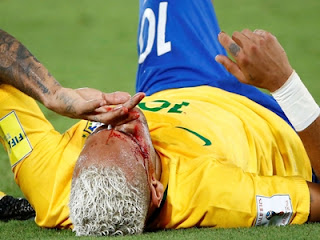 Neymar sofreu durante a partida contra a Bolívia nesta quarta. Após um primeiro tempo perseguido pelo time boliviano, o atacante da seleção e do Barcelona levo uma cotovelada de Duk que provocou um corte acima de seu olho. Ele precisou sair de campo para ser atendido e, aos 22 minutos do segundo tempo, o técnico Tite decidiu tirar o atacante. Veja nas imagens como ele ficou após o choque. O Brasil venceu por 5 a 0 no terceiro jogo do treinador no comando da equipe. (Noticias ao Minuto)