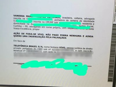 Advogada usa palavrões em ação contra Vivo: ‘vou pagar p… nenhuma’