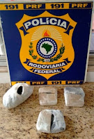 A Polícia Rodoviária Federal (PRF) apreendeu, na manhã desta quarta-feira (8), 2,3 kg da droga conhecida como haxixi. O fato ocorreu por volta das 11h, no KM 830 da BR-116, em Vitória da Conquista, no Sudoeste da Bahia. Durante abordagem a um ônibus interestadual de passageiros que fazia a linha de São José do Rio Preto/SP para Recife/PE, os agentes fiscalizaram o interior do veículo, encontrando, dentro do compartimento de bagagens, quatro tabletes da droga. Os passageiros foram interrogados, mas a pessoa responsável pelo transporte do entorpecente não foi identificada. A ocorrência foi encaminhada para a delegacia de polícia judiciaria local. (Correio)