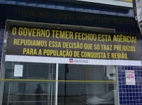 Apenas duas agências do Banco do Brasil funcionarão em Vitória da Conquista, no sudoeste. Outras duas que atendiam a cidade foram fechadas. Os cortes fazem parte da política de enxugamento e contenção de despesas do governo Michel Temer (PMDB). Na última sexta-feira (10), a agência 3176, situada na Avenida Régis Pacheco, foi desativada. Ainda no final do ano passado, a Superintendência Regional do banco na cidade também teve os trabalhos encerrados. A superintendência, uma das mais importantes da Bahia, estava em atividade há 24 anos. Segundo o Blog do Anderson, o prefeito da cidade, Herzem Gusmão, que é do mesmo partido do presidente da República, não gostou do fato e criticou a interrupção das atividades das duas agências finaliadas no município. Após o fechamento delas, só restam, agora, uma na Praça Barão do Rio Branco e outra na Avenida Olívia Flores. (BN)