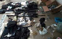 Na chácara onde os suspeitos se escondiam, conforme informou a Secretaria da Segurança Pública, foram apreendidas várias unidades de emulsão para explosivos com espoletas acopladas, três fuzis – dois de calibre 7,62 e um 556 – uma pistola 9 milímetros e dois revólveres, além de munições compatíveis com estes armamentos e de calibre.50. No local ainda foram encontrados quatro coletes balísticos e 200 miguelitos (instrumentos pontiagudos com várias pontas utilizados para furar pneus e provocar atraso na chegada do reforço policial via terrestre) e diversas placas de carros. (G1)
