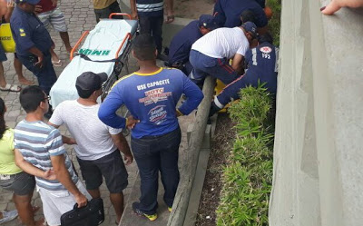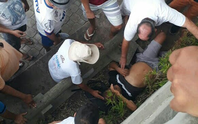 No fim da manhã deste sábado, 09/12, um senhor de identidade não revelada despencou do cais na parte alta da praça onde estava sentado depois que perdeu o equilíbrio. Populares que viram a cena acionaram o SAMU que prestou os primeiros socorros à vítima e a levou em seguida para o Hospital Municipal. As fotos, enviadas por um leitor do nosso portal, mostram que muitas pessoas se juntaram no local da queda. O estado atual de saúde do senhor acidentado é desconhecido.