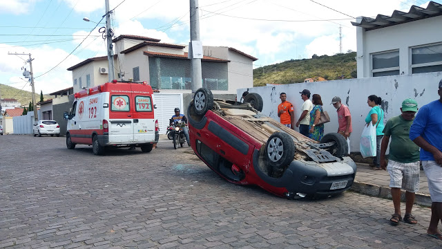 No final da manhã desta quarta-feira, 12 de julho de 2018, a condutora de um veículo Uno perdeu o controle da direção vindo a capotar ao se envolver em um acidente com um Celta na Rua Elvira Pires, esquina com a Rua Reynilde Pires Jacobina Brandão, próximo ao INSS no Bairro da Estação em Jacobina.