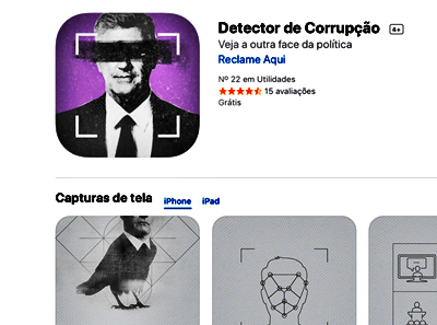 O Reclame Aqui lançou 1 aplicativo chamado “Detector de Corrupção”. A ferramenta está disponível para download desde a última 6ª feira (27.abr.2018) e usa o reconhecimento facial para listar processos e condenações contra políticos. Para acessar as informações relacionadas ao político o usuário pode usar uma foto tirada presencialmente ou ainda 1 cartaz, uma imagem da internet ou jornal. A checagem é gratuita. Por enquanto, a ferramenta só está disponível para IOS. Segundo a descrição do aplicativo na AppStore, o banco de dados abrange presidentes, vice-presidentes, senadores, deputados federais e governadores que ocuparam o cargo nos últimos 8 anos. Também estão listados os atuais pré-candidatos à Presidência da República e a governos de Estados. As informações foram consolidadas a partir de bases de dados públicas de tribunais de diversas Instâncias. A página do Reclame Aqui no Facebook disponibilizou 1 vídeo onde o ator Maurício Meirelles testa o aplicativo no Congresso. Na gravação, aparecem as reações dos deputados Ronaldo Lessa (PDT-AL), Sérgio Souza (MDB-PR), Darcísio Perondi (MDB-RS), Nelson Marquezelli (PTB-SP). (Poder360)