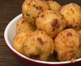 Modo de preparo: Cozinhe a mandioca em água fervendo até conseguir furar com um garfo, mas não cozinhe demais! Retire da água e seque os pedaços com papel toalha. Rale a mandioca em uma tigela e adicione o parmesão, a farinha de trigo, o bacon, a cebolinha e o sal até virar uma massa. Pegue um pouco da massa e faça uma bolinha com um pedaço de muçarela dentro. Frite em óleo bem quente até dourar e aproveite! (Tasty Demais)