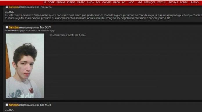 Além disso, o jornal O Globo revela que, em outro fórum, o 55chan , os dois jovens que promoveram o ataque também foram tratados como heróis. “Luiz Henrique saiu da vida para entrar para a História”, disse um membro, numa referência à carta deixada por Getúlio Vargas. “Eu, channer, apoio o massacre nas escolas”, escreveu um. “Mataram pouco”, disse outro. (Informações: Notícias ao Minuto)