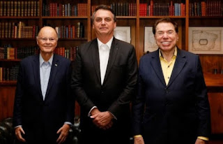 O presidente Jair Bolsonaro recebeu os donos do SBT e Rede Record para um jantar no Palácio da Alvorada na noite de ontem.