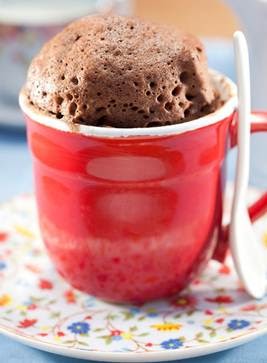 Coloque na caneca o ovo, o açúcar e a manteiga e bata bem com o auxílio de um garfo, até obter um creme. Acrescente o iogurte e o chocolate em pó e bata por mais algum tempo. Incorpore a farinha de trigo e o fermento e misture muito bem. Por fim, misture a clara em neve, delicadamente, e leve ao micro-ondas por 3 minutos, na potência máxima. Deixe descansar por mais 3 minutos, sem abrir o microondas. Sirva imediatamente.