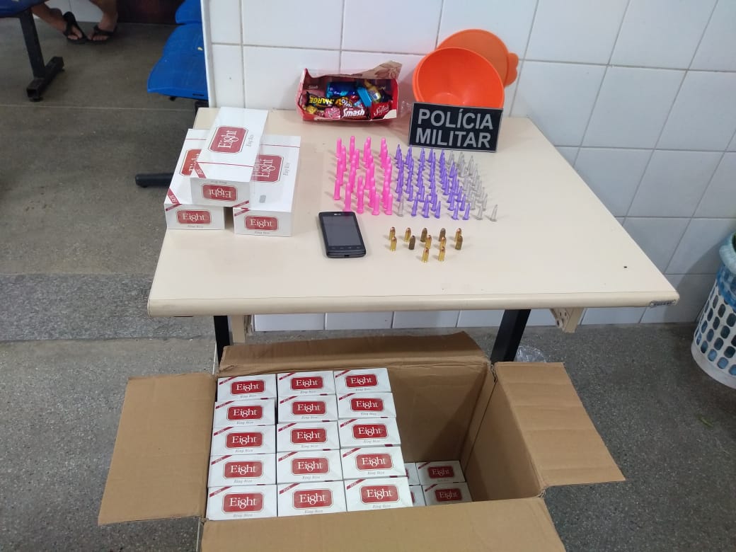 Questionado ao condutor do veículo a procedência da substância, o mesmo passou a relatar que adquiriu num estabelecimento comercial no Bairro Catuaba. Munidos da informação, os Policias foram até o local descrito onde se manteve contado com um funcionário, o qual autorizou que realizasse uma revista no escritório, onde foram encontrados: (01) caixa contendo (43) pacotes de cigarros supostamente contrabandeados, (12) cartuchos de arma de fogo calibre 380, uma vasilha plástica contendo em seu interior mais (65) pinos da mesma substância encontrada no veículo e uma quantia de R$ 750,00 em espécie.