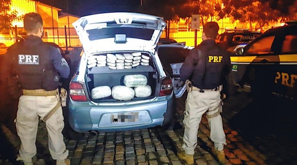 Um casal foi preso após ser flagrado com 35,3 Kg de maconha, escondidos dentro da caixa de som e no forro das portas do carro onde onde estava, na BR-116, altura de Santa Bárbara, cidade da região nordeste da Bahia. Segundo a Polícia Rodoviária Federal (PRF), eles chegaram a levar uma criança para tentar despistar os policiais.