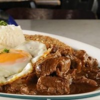 Aqueça uma frigideira com óleo e adicione a cebola, o alho e a metade salsão. Refogue até dourar e reserve. Bata em um liquidificador o gengibre, a cenoura, o restante do salsão e reserve. Em uma panela, aqueça o chope preto (ou a cerveja) até reduzir a metade. Coloque o picadinho para cozinhar por aproximadamente 15 minutos, retire 80% do caldo e adicione o puxado de cebola, alho e salsão, adicione o batido de cenoura, gengibre e salsão e tempere com sal. Após 10 minutos, adicione o restante do caldo e o molho rôti, acerte o sal e por último coloque o tomilho. Deixe cozinhar por aproximadamente 20 minutos.