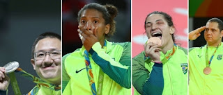 As quatro medalhas que o Brasil ganhou até agora nos Jogos Olímpicos Rio 2016 foram conquistadas por militares. Segundo o colunista Ancelmo Gois, do jornal O Globo, os atletas Felipe Wu, Rafaela Silva, Rafael Silva e Mayara Aguiar integram o programa Atletas de Alto Rendimento, das Forças Armadas. Felipe Wu faturou uma prata no tiro esportivo. Já a judoca Rafaela Silva ganhou o único ouro brasileiro até agora. Os também judocas Rafael Silva, o Baby, e Mayra Aguiar, conquistaram um bronze cada um. (Noticias ao Minuto)
