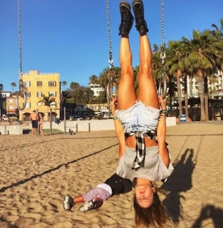 Em foto compartilhada em sua conta no Instagram, ela mostra força e resistência ao se colocar de ponta-cabeça em argolas, no melhor estilo olimpíco.