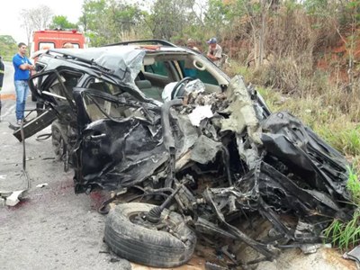 Um homem de 58 anos morreu e outros dois ficaram feridos após a caminhonete em que eles viajavam bater em um caminhão tanque na BR-242, na altura do município de Barreiras, oeste da Bahia, na manhã desta quinta-feira (6). O carro ficou destruído. As informações são da Polícia Rodoviária Federal (PRF). De acordo com a PRF, o acidente ocorreu por volta das 10h30, quando o condutor do carro, que seguia de Barreiras para Luís Eduardo Magalhães, perdeu o controle do veículo enquanto subia uma ladeira com curva, no KM-825 da rodovia. Chovia no momento da batida. O carro rodou na pista molhada e colidiu com o caminhão tanque, que vinha no sentido contrário. Segundo a PRF, a parte atingida pelo caminhão foi o lado do carona, que morreu na hora. Com o impacto, o corpo dele ficou preso às ferragens. O Corpo de Bombeiros esteve no local e fez a remoção do corpo da vítima de dentro do veículo.As outras duas vítimas tiveram ferimentos graves e foram socorridas pelo Samu para Hospital do Oeste, em Barreiras. Não há informações sobre o estado de saúde dos feridos. Conforme a PRF, o caminhão tanque ficou atravessado em uma das faixas da pista, no sentido Luís Eduardo Magalhães. O tráfego na região ficou parcialmente interditado e provocou congestionamento na rodovia. O veículo carregava óleo diesel e houve derramamento do produto na pista. Agentes do Departamento Nacional de Infra-Estrutura de Transportes (Dnit) estiveram no local e jogaram areia sob o óleo que caiu. Até o fechamento desta matéria, a caminhonete e o caminhão ainda estavam no local. (G1 Bahia)