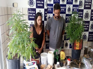 Um casal de Teixeira de Freitas, no sul baiano, foi preso nesta sexta-feira (4) por tráfico de drogas. Daniel Salvador Oliveira, 33 anos, e Bertha Batista Venturin, 32, são donos de um restaurante japonês no bairro Bela Vista. No local, a polícia encontrou pés de maconha, além de LSD e ecstasy. Segundo a investigação policial, eles negociavam a droga no próprio estabelecimento comercial. Equipes da Delegacia de Tóxicos e Entorpecentes (DTE) e da 8ª Coordenadoria Regional de Polícia do Interior (8ª Coorpin/Teixeira de Freitas) estiveram no restaurante e na casa dos dois cumprindo mandados de busca e apreensão. Foram apreendidos seis pés de maconha, estufas, uma balança de precisão, além de 1.586 micropontos de LSD, 79 comprimidos de ecstasy e 1,8kg de maconha. O delegado Marco Antônio, titular da DTE, diz que além de cultivar a maconha o casal também fazia secagem, prensagem e revenda no próprio restaurante. As drogas estavam armazenadas em freezers no jardim do local. O casal foi autuado em flagrante por tráfico de drogas. (Correio)