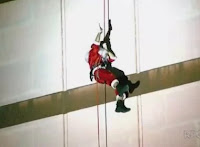 O Papai Noel da cidade de Toledo, no Paraná, pode até saber descer por uma chaminé, mas nesta quinta-feira (15) ele mostrou que tem dificuldades se precisar fazer um rapel para entregar os presentes. Durante uma apresentação que marcaria a chegada do personagem natalino à cidade, ele ficou com a barba enroscada na corda enquanto descia de um prédio. De acordo com a RPC TV, ele precisou ser socorrido por uma equipe do Corpo de Bombeiros. O caso não passou de um susto e pouco depois de ser resgatado o Papai Noel atendeu e abraçou crianças na praça da cidade.