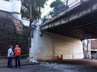 Pedra cai de viaduto em obras e mata pedestre no centro de Salvador