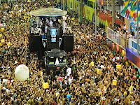 A banda Baiana System agitou os foliões do circuito Osmar nesta sexta-feira (24), com a apresentação que fez no Furdunço. Para quem reclamou da multidão atrás do navio pirata no último domingo (19), a edição desta sexta foi uma boa pedida. Com menos gente acompanhando a atração, a pipoca pôde dança com mais espaço, principalmente quando Baiana tocou músicas como “Playsom” e “Terapia”. Russo Passapusso ainda aproveitou para fazer marcações políticas durante a festa, puxando gritos como “Fora Temer” e “Machistas não passarão”.