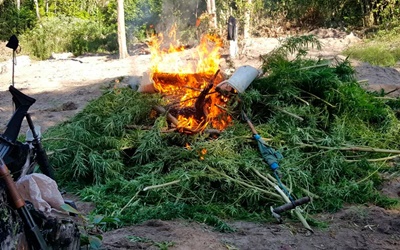 Uma plantação com mais de 10 mil pés de maconha foi incinerada pela polícia, na terça-feira (9), na cidade de Esplanada, distante cerca de 150 km de Salvador. De acordo com informações da Polícia Civil, a droga, que ocupava uma área equivalente a três campos de futebol, foi encontrada por equipes do Departamento de Repressão e Combate ao Crime Organizado (Draco) e da Coordenação de Operações Especiais da Polícia Civil (COE/PC), após denúncias. Segundo a polícia, durante a ação, o grupo que cultivava a droga percebeu a chegada dos policiais e fugiu. Os agentes realizaram rondas na região, mas os suspeitos não foram encontrados. A polícia procura pelo grupo e pelo proprietário do terreno onde a maconha era cultivada. Até a publicação desta reportagem, nenhum suspeito havia sido preso. Algumas mudas da droga foram separadas e encaminhadas para a perícia no Departamento de Polícia Técnica (DPT), onde serão periciadas. (G1 Bahia)