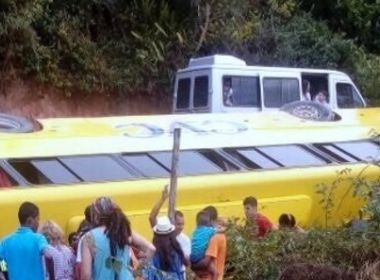 Um ônibus da empresa CVC tombou na manhã desta segunda-feira (24) em Trancoso, Porto Seguro, na Costa do Descobrimento. Segundo o site Radar 64, pelo menos três pessoas ficaram feridas com gravidade. Testemunhas contaram que o ônibus trafegava em uma estrada de terra, próximo à praia de Taipe. O veículo teria parado em uma curva para passagem de uma van, quando tombou em um barranco. Moradores locais improvisaram uma barraca para ajudar no socorro às vítimas enquanto aguardam a chegada do Samu.