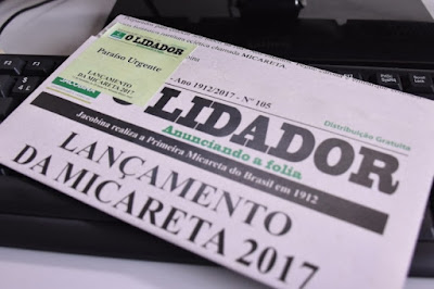 Na manhã deste dia 09 de setembro de 2017, chegou a redação do site Paraíso Urgente uma edição especial do famoso jornal “O Lidador”, claro que nada mais que uma justa homenagem ao periódico semanal da cidade de Jacobina que circulava na década de 30, de onde vem um histórico registro, foi em Jacobina que a expressão original “Mi-careme” se transformou em Micareta, tendo “O Lidador” há época como principal estimulador da realização das novas celebrações na cidade. Apesar da expressão ter sido inaugurada na década de 30, a folia em Jacobina já tem registros desde 1912.