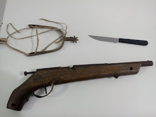 Na noite deste sábado, 11 de agosto, policiais militares do 3º Pelotão em Saúde, comandado pelo Subtenente PM Cláudio Aguiar dos Santos, foram informados sobre uma agressão física no bairro Alto da Santa Cruz e, chegando ao local, foi identificado o agressor, um indivíduo de 23 anos de idade, que com ele foi encontrado uma faca de mesa e os familiares deste agressor passaram a informar que ele também ameaçou vizinhos com uma arma de fogo de fabricação caseira e ainda agrediu seu filho com uma espora de animal. O indivíduo foi conduzido para a Delegacia de Polícia local para serem tomadas as providências cabíveis.