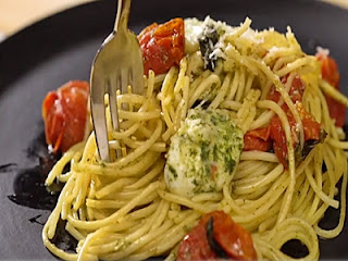 INSTRUÇÕES: Em uma forma, dispor os tomatinhos, temperar com sal e pimenta do reino. Dispor os ramos de manjericão e o azeite de oliva e levar ao forno a 180 graus por, aproximadamente, 40 minutos. Em uma frigideira quente, dispor um fio de azeite e refogar o pesto. Adicionar o macarrão cozido e ½ xícara da água do cozimento do macarrão. Juntar os tomatinhos confit, a muçarela de búfala e as folhas de manjericão. Cozinhar por 3 minutos, corrigir o sal e a pimenta e servir com queijo parmesão. (Taste Made)