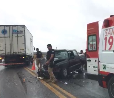 Quatro ficam feridos em batida entre dois carros após ultrapassagem na BR-367