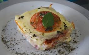 Colocar metade do molho de tomate temperado, presunto, camada de requeijão, metade da mussarela, restante do pão de forma, molho de tomate, creme de leite, mussarela, tomate em rodelas, orégano Leve o refratário ao forno até a mussarela derreter (fiz no micro-ondas)
