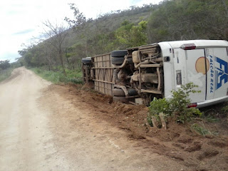 Um ônibus da empresa Falcão Real, antiga empresa São Luiz, tombou próximo ao povoado de Jequitibá, no município de Mundo Novo, no centro norte da Bahia.