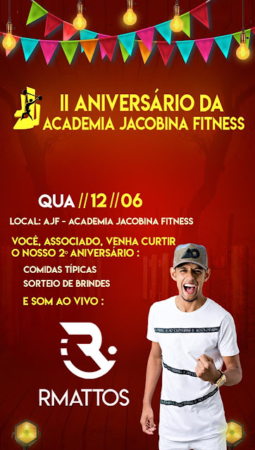 Dia 12 de julho tem festa no 2° Aniversario da Jacobina Fitness
