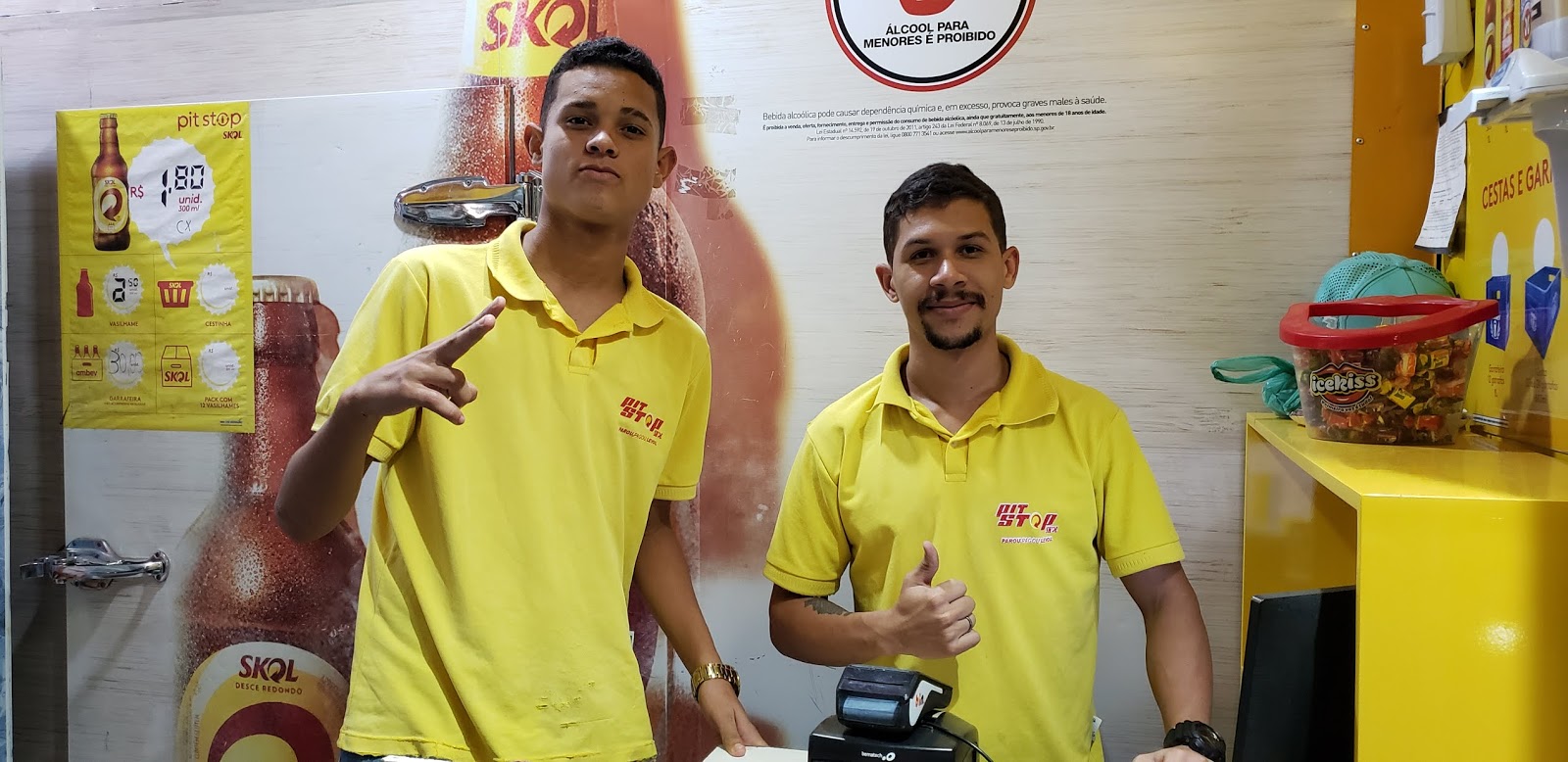 A dupla atende no Pit Stop Skol, que litrinho Skol por apenas R$ 39,00, para sua confraternização, para sua festa.