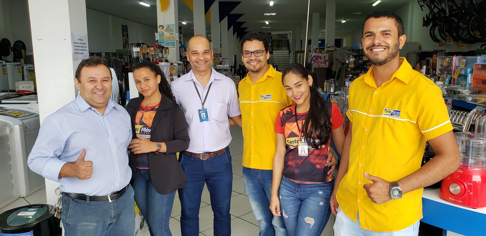 Manhã de sexta-feira, 10 de setembro de 2019, e aqui na Av Lomanto Jr em Jacobina, clicamos o gerente Cristiano Barbosa, na companhia de parte da equipe da Center Móveis e Eletros.